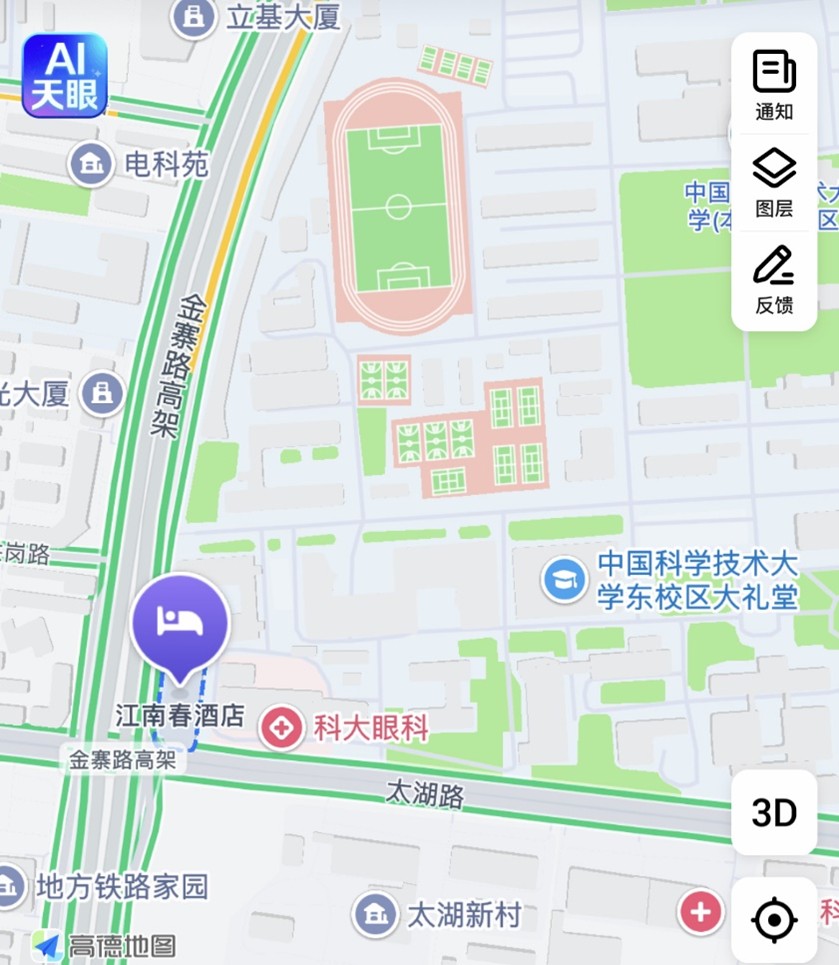 - No. 311 Jinzhai Road, Shushan District, Hefei. 2.4 km (11-minute drive) north of the East Campus North Gate of USTC.